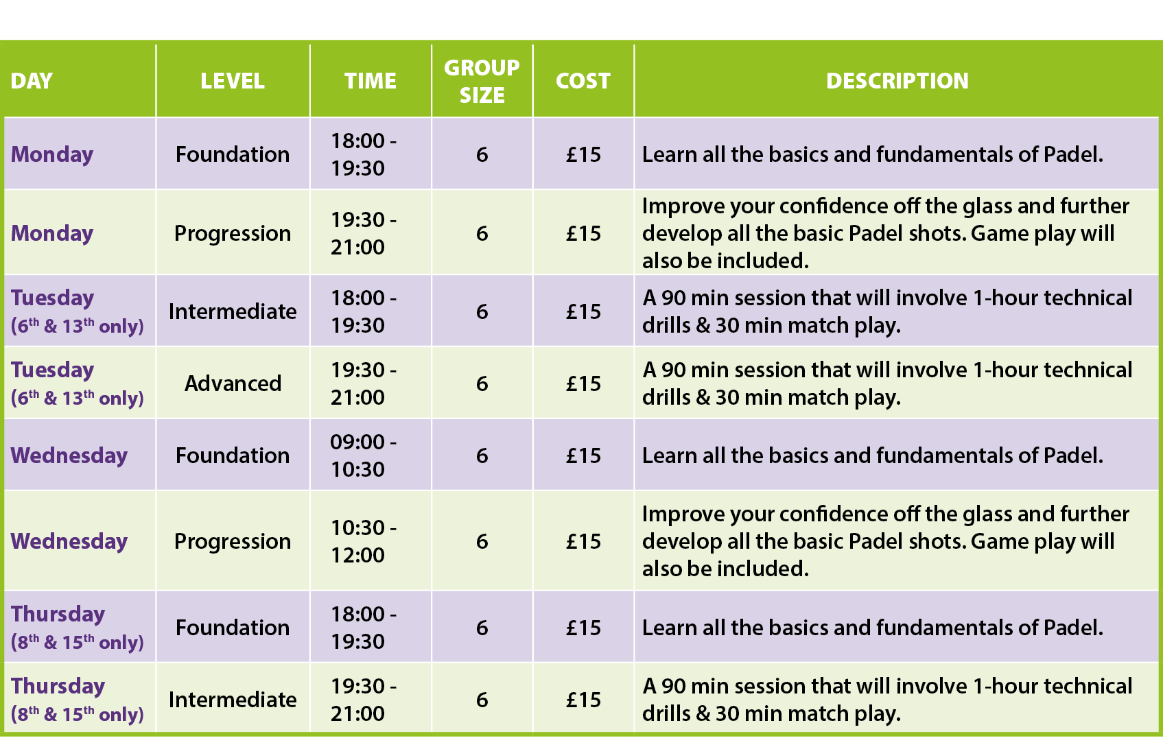 Our PADEL FOUNDATION COACHING (beginner sessions) are on